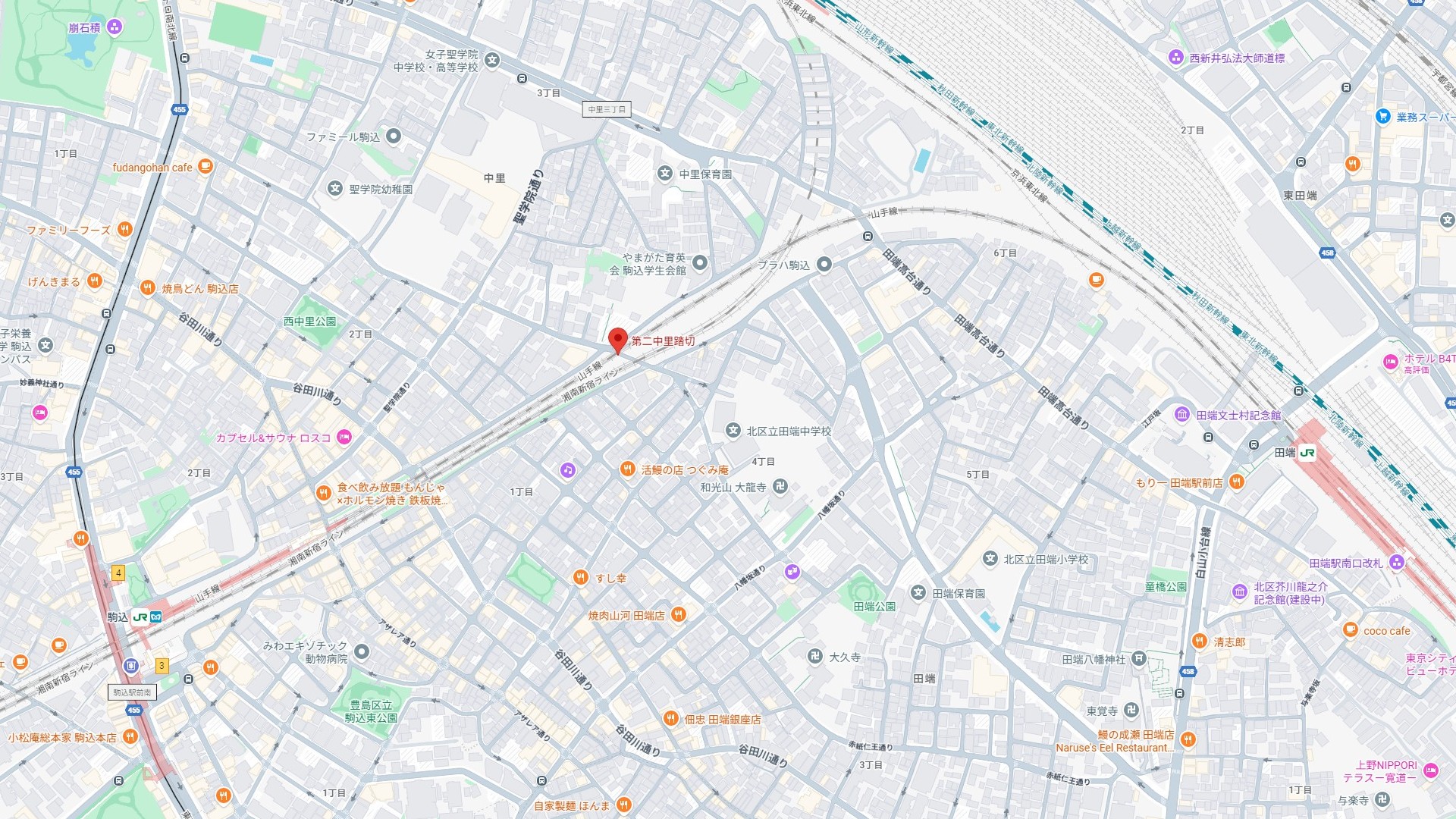 山手線の駒込駅と田端駅の間には、2005年(平成17年)以降、山手線に唯一残された踏切「第二中里踏切」がある。