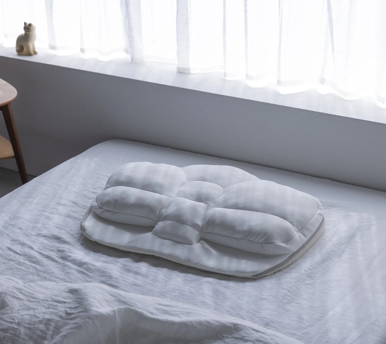 スレプトンの商品「slepton iS THE AI perfect fit pillow」では、スマホアプリ「slepton FIT」による骨格判定・姿勢診断データと睡眠環境・パーソナルデータをもとに理想的な姿勢をキープすることができるあなたに最適化された唯一のまくらをお届けする。
