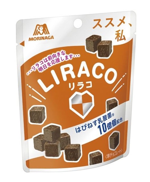「リラコ」は何かとストレスが溜まりがちな毎日にチョコの美味しさでリラックスしてもらいたいというコンセプトで開発された。手につきにくいので、仕事や家事の合間に手軽に食べることができる。「リラコ」は前向きな明日を応援する。