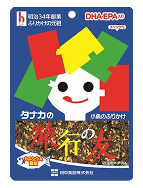 同社のふりかけ「旅行の友」は、小魚とごまと海苔と玉子の自然の味を大切にし、カルシウムも1食分2.5gで、牛乳40cc分(いりこ3~4匹分)と豊富で、素材の美味しさで愛され続ける伝統の味である。