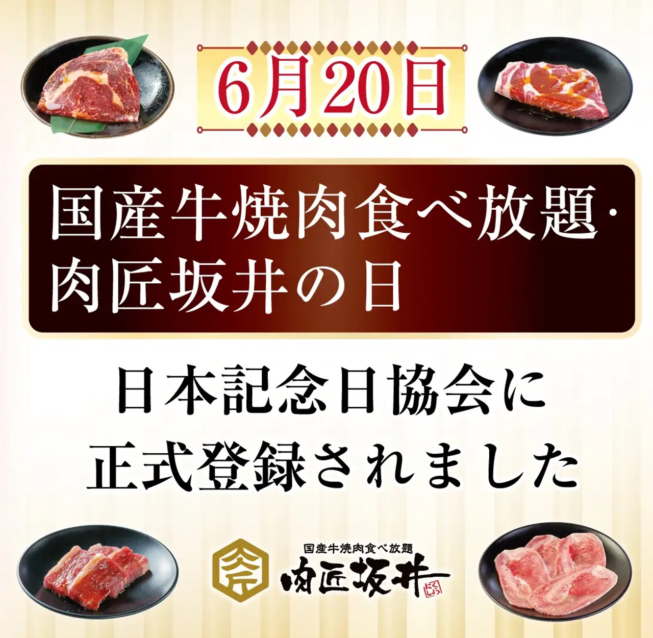 記念日は2025年(令和7年)5月20日に一般社団法人・日本記念日協会により認定・登録された。「肉匠坂井」では記念日の6月20日を中心として創業祭が開催され、アプリ会員限定だが食べ放題の特別割引が実施される。