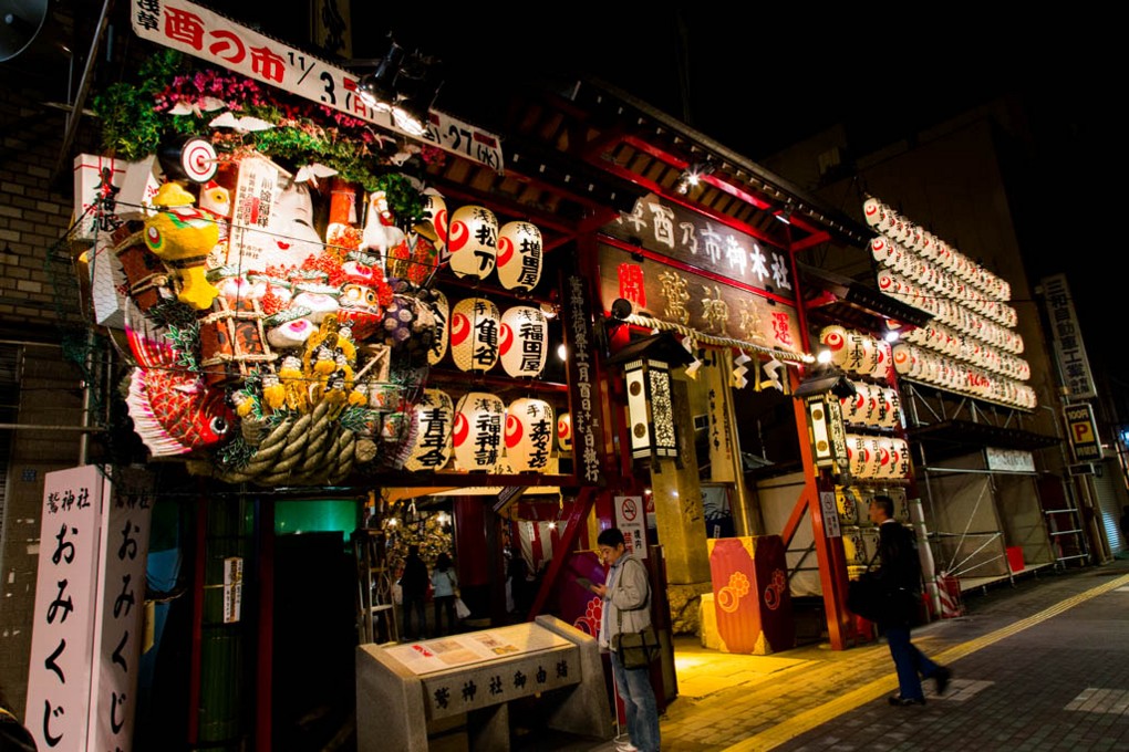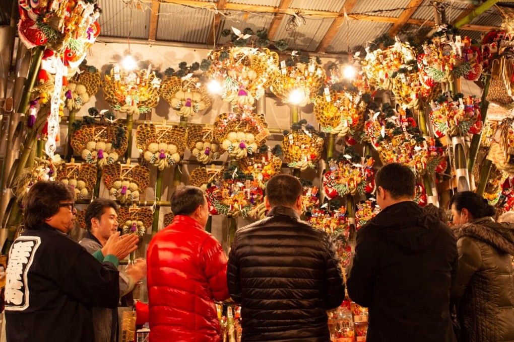 関東地方を中心とする祭りで、開運招福・商売繁盛を願う。多くの露店で、威勢よく手締めして「縁起熊手」を売る祭りの賑わいは、年末の風物詩である。熊手は、熊の手のように曲がったつめ状のものを扇形につけた道具。縁起熊手は、熊手を飾ったもので、幸運や富をかき集める商売繁盛の縁起物である。